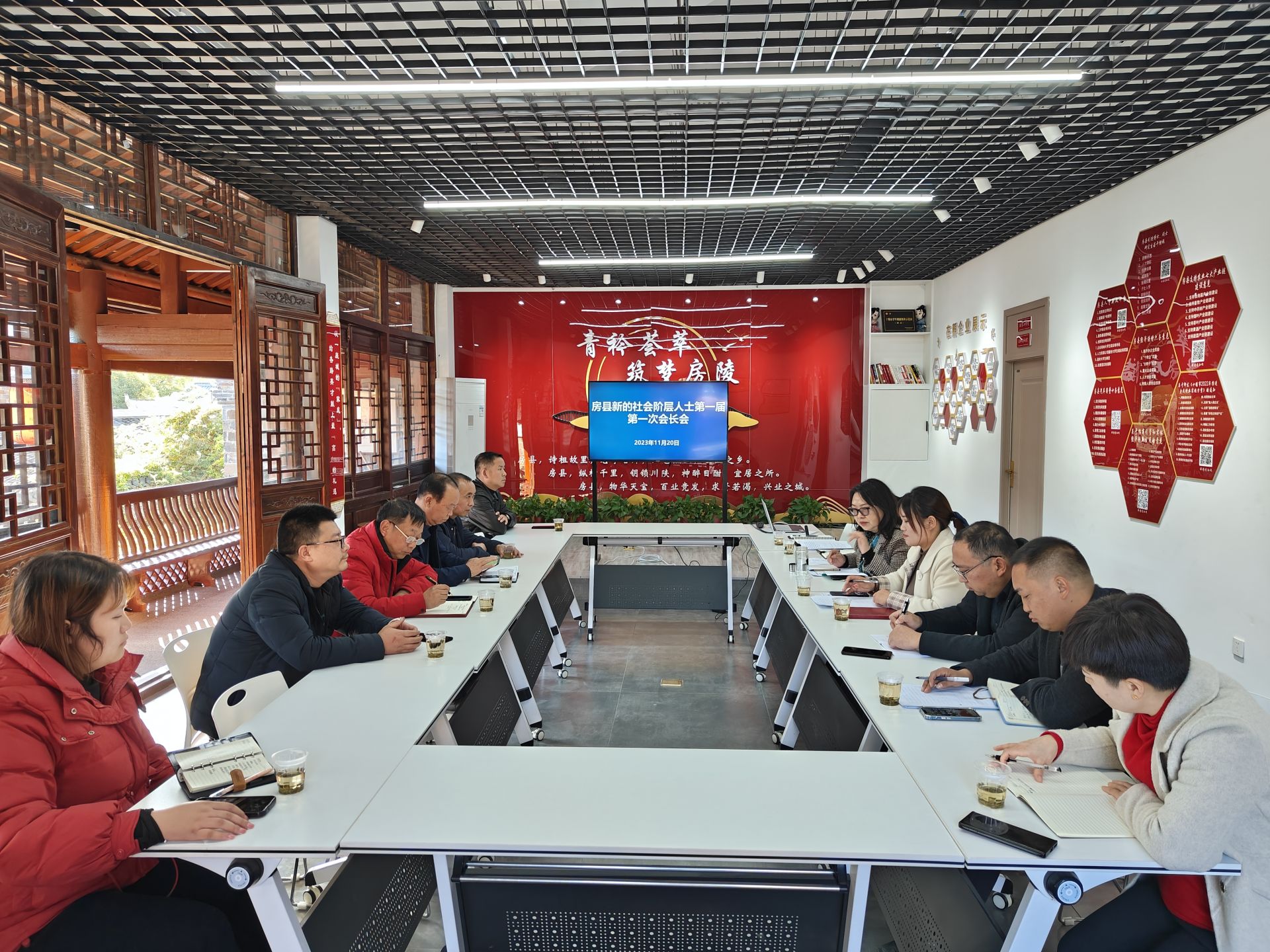 房县新闻网讯 通讯员杨小冬、舒冠男 报道: 11月20日,房县新的社会阶层人士会长办公会在西关印象“双创基地”召开。县侨联主席庞金凤应邀出席并讲话。县新联会班子成员及秘书处全体人员参加会议。