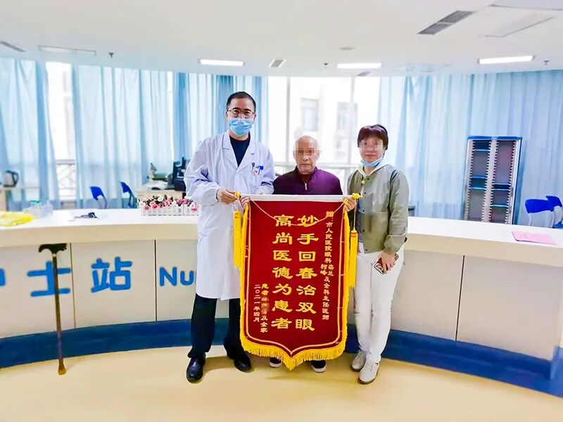4月30日,林伟专程来到医院,将一面镶有“妙手回春治双眼 高尚医德为患者”的锦旗送至柯峰主任手中。