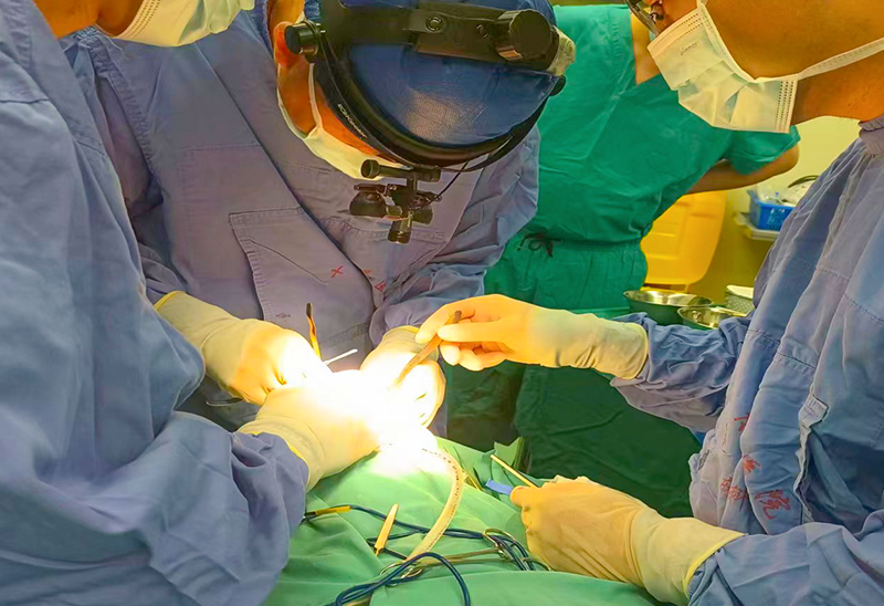 柯峰主任思量再三,决定另辟蹊径,从眼睑外眦扩大联合内上方结膜入路,采用这种微创手术方法,“借道”治疗。手术当天,由柯峰主任主刀,并特邀首都医科大学附属北京同仁医院眼肿瘤科主任、主任医师、医学博士马建民同台手术,经过1个小时的紧张操作,这颗直径达2.5厘米的肿瘤被完整剥离,并顺利取出。