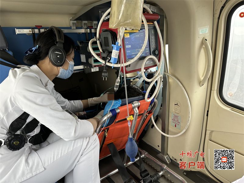 接到求助电话后,十堰市人民医院立即启动直升机空中转运预案。航空救援科主任郭文萍迅速通知医护人员和中航材航空救援十堰备勤机组做好起飞准备。下午16时06分,直升机从健康广场起飞;16时34分,直升机在竹山县体育馆着陆;16时50分,直升机再次起飞,17时10分顺利返院,仅用20分钟就将患者顺利接回,比地面救援快了近4个小时。高效、快速的空中转运为病人争取了最佳救援时间。