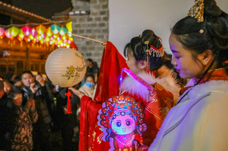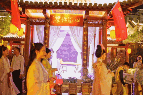 在老北街民俗文化街区,郧西三弦那悠扬的曲调,将《织女还乡》的场景缓缓开启。