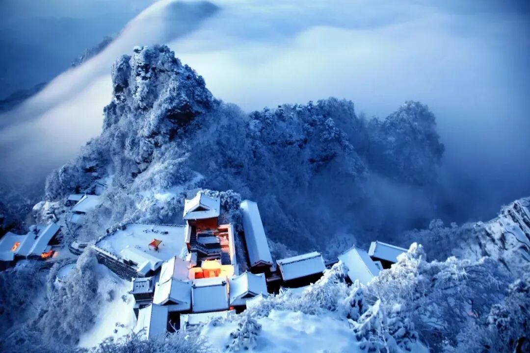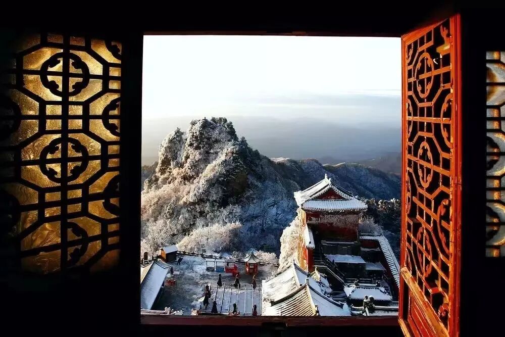 雪落武当,白雪红墙,只需一抹晶莹,便把这山岭,变成了仙境。