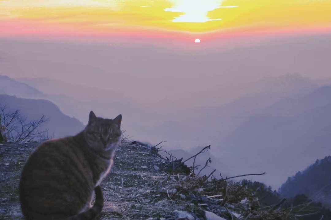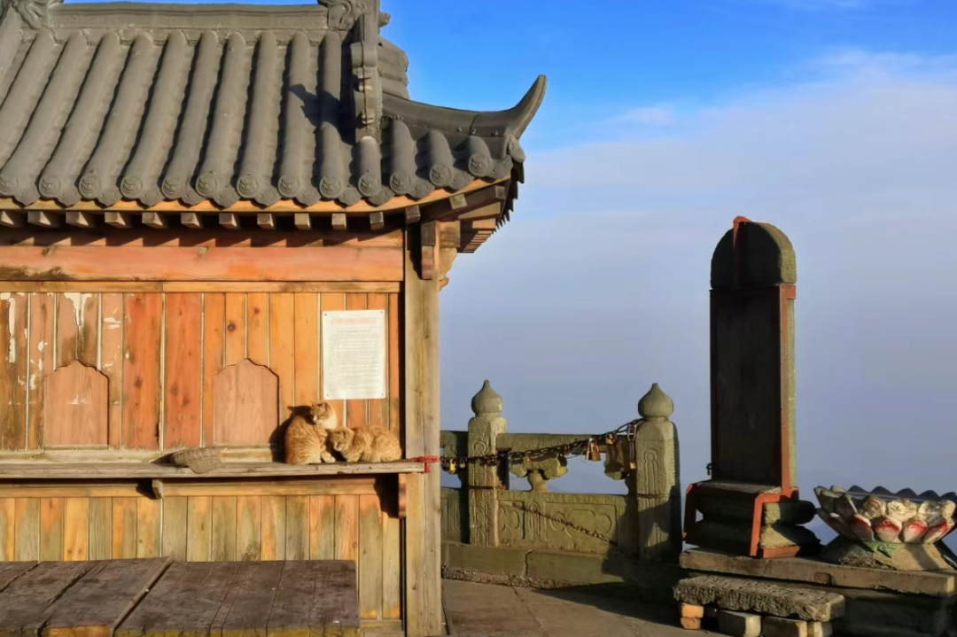 金顶的“功夫猫”见证了这里的一年四季,你忍不住的投喂,让它们可以与温饱和自由同行。
