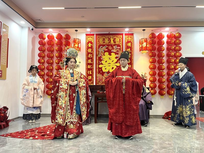 活动当天还举行了隆重的汉服婚礼,新婚姻登记中心一投入使用便有不少新人前来领证登记。“非常高兴能够成为新的婚姻登记中心首位拿到结婚证的夫妇。在这个特有的环境下,特别是有中式还有西式的场景布置下,让我们觉得领证变得非常有意义、非常有氛围,我们彼此更加珍惜对方。”来婚姻登记中心领证的第一对新人开心地说道。