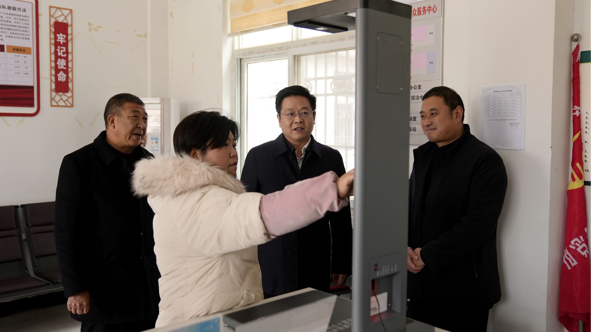 谢晓鸣在大木厂镇便民服务中心与基层干部交流