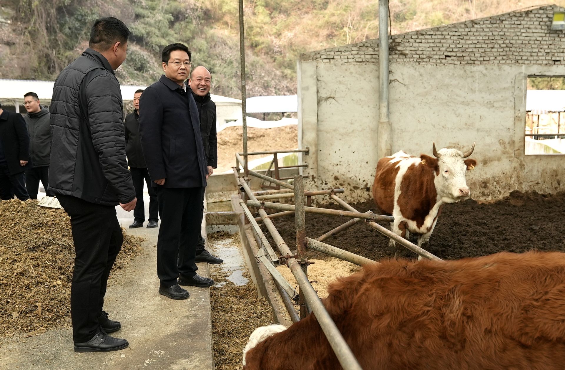 谢晓鸣在大木厂镇牵亿肉牛养殖合作社察看养殖情况