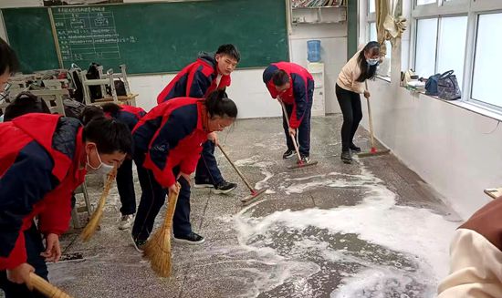 房县新闻网讯 通讯员 朱玉琪 报道 连日来,城关四中组织开展了迎“元旦”爱国卫生运动,营造整洁、优美、干净、有序的校园环境。 校园内,全体师生积极行动,对教学楼、卫生区、教室和所有功能室进行全面打扫,对破旧墙面、门窗进行清理,对各类劳动工具规范摆放。大家相互配合,认真打扫,让教室内外干净整洁、无杂物、无死角。经过全校师生的共同努力,校园的环境卫生得到改善,校园面貌焕然一新。 校园外,学校组织志愿者对校园周边街道、行道树落叶和垃圾进行卫生整治。社区的每个角落都能看到美丽的“志愿红”,到处都是热火朝天的劳动景象,形成了人人参与、上下联动的积极氛围。