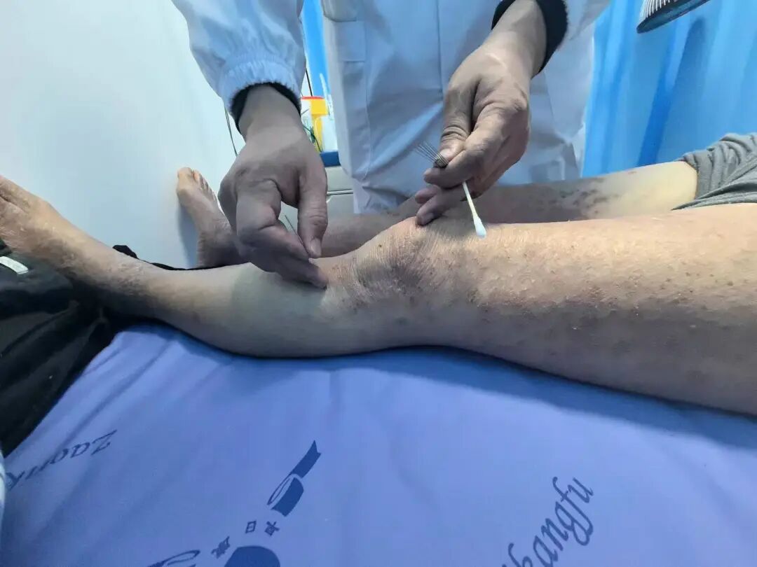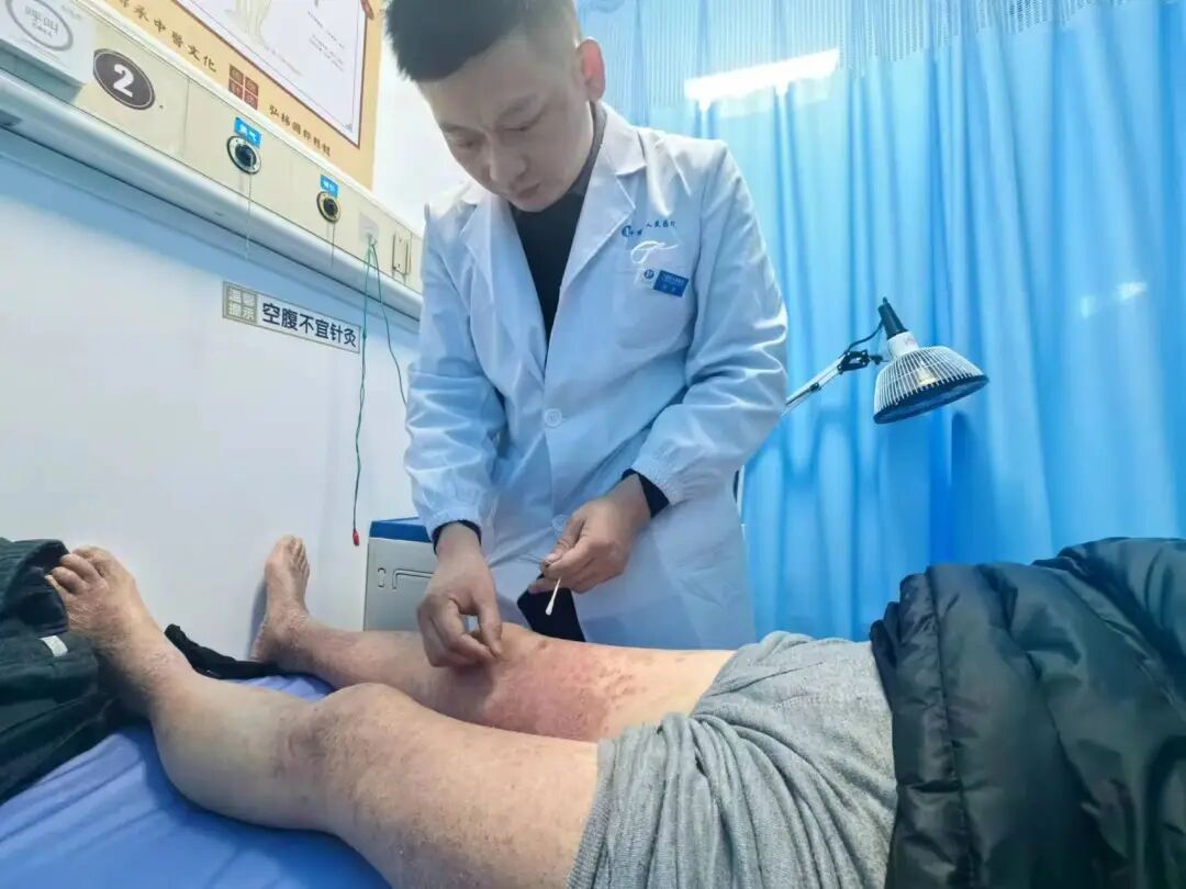 之后,在朋友的建议下他去十堰人医传统中医针灸科,尝试主治医生张发的针灸疗法。初次上门就诊时,包裹得严严实实的刘大爷一脱去衣服,皮屑就散落一地。由于长时间涂抹激素软膏,导致皮疹增生变厚,张发一连扎弯了七八根银针,都无法穿透刘大爷的皮肤表面。