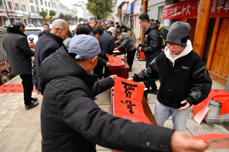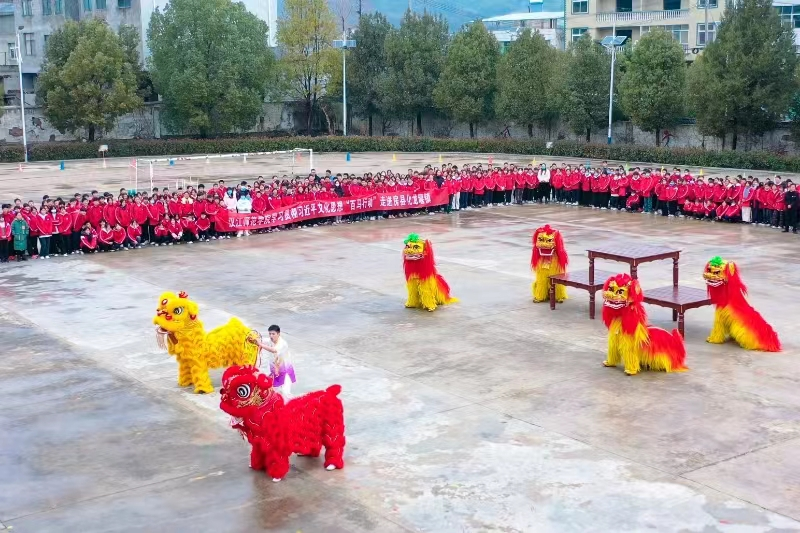 送文化下乡,让传统文化惠民利民。汉江师范学院体育学院龙狮队在房县化龙堰镇化龙中学操场举行“龙腾盛世·礼赞祖国”舞龙舞狮展演活动,精彩绝伦的舞龙舞狮表演吸引了该校800余名学生和过往的群众,现场雷鸣般的掌声、喝彩声此起彼伏。同时,汉江师范学院文学院师生在房县化龙堰镇新时代文明实践所门前举行“礼赞二十大·翰墨颂华章”送春联活动,现场墨香四溢、人声鼎沸,各种字体的春联不断从书法老师的笔下飞出,现场浓浓的年味伴随着墨香扑面而来,吸引了大批群众驻足观赏,纷纷前来领取春联。