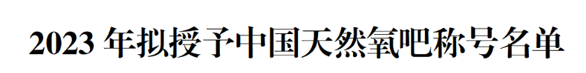中国天然氧吧评审结果的公示》