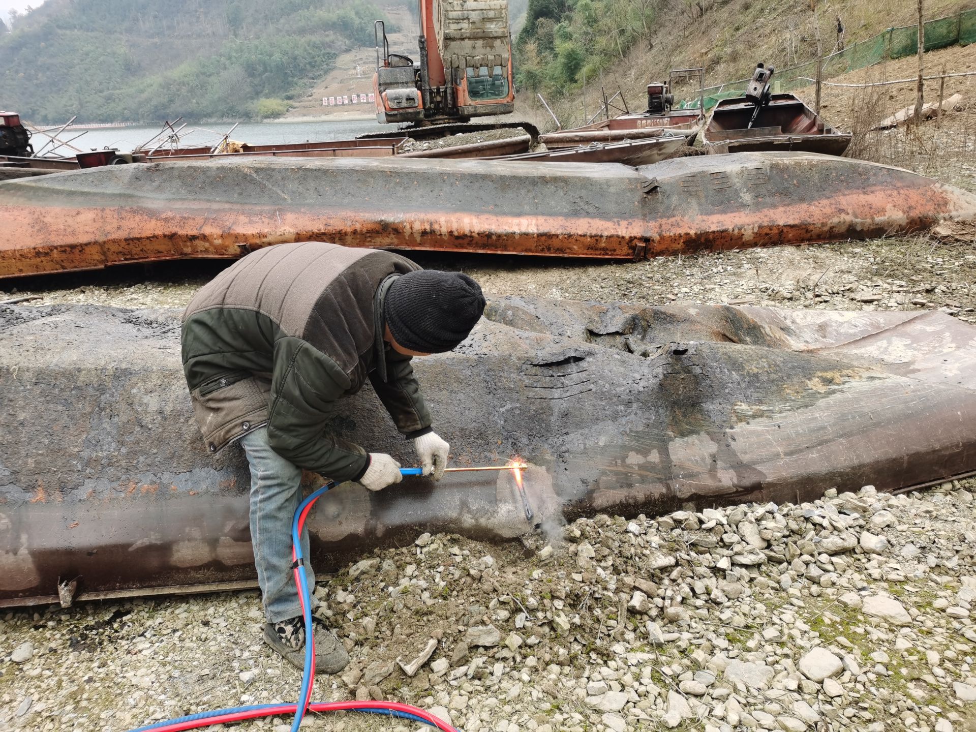 房县新闻网讯 通讯员 杜红娥 杨政 报道:1月15日下午,随着一艘艘锈迹斑驳的农民自用渔船被缓缓拖上河床,县交通运输局牵头、11个相关职能部门组成的联合专班对船体进行逐一登记,工人手持气焊切割机,逐一对“三无”船只的船体进行了拆解,我县 “三无”船舶取缔专项行动正式启动,活动首日现场征收各类“三无”船只37艘、完成拆解5艘。