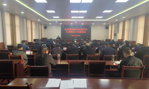 房县新闻网讯 通讯员 袁丽 李攀 报道:为进一步加强旺季烟花爆竹安全生产工作,防范遏制烟花爆竹安全事故发生,切实保障人民群众生命财产安全,1月22日,房县召开旺季烟花爆竹专项整治工作推进会议。会议根据前期工作开展情况,总结分析了当前我县烟花爆竹领域安全生产形势,安排部署了下一阶段集中整治工作,20个乡镇及相关部门分管领导参加会议。