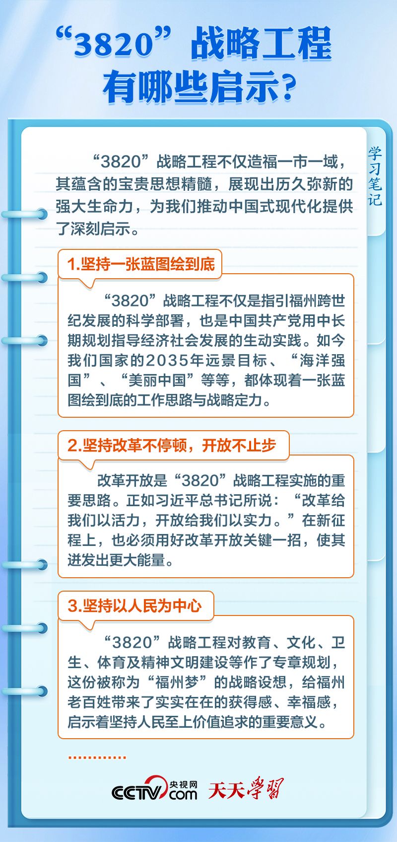 上世纪90年代,习近平在福州工作期间,亲自主持编制了《福州市20年经济社会发展战略设想》(简称“3820”战略工程),系统谋划了福州3年、8年、20年经济社会发展的目标、步骤、布局、重点等,为福州擘画了美好蓝图,确立了总纲领、总方略。