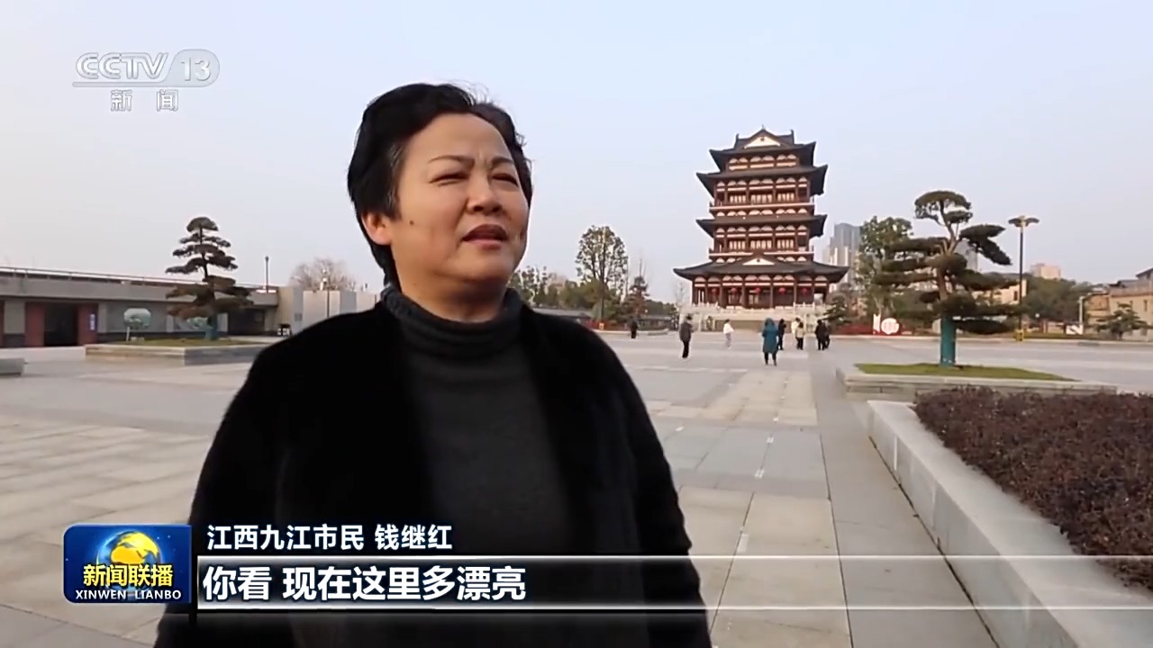 江西九江市民 钱继红:现在这里多漂亮,每天我要带着小孩来这边散步,欣赏美丽的江景。