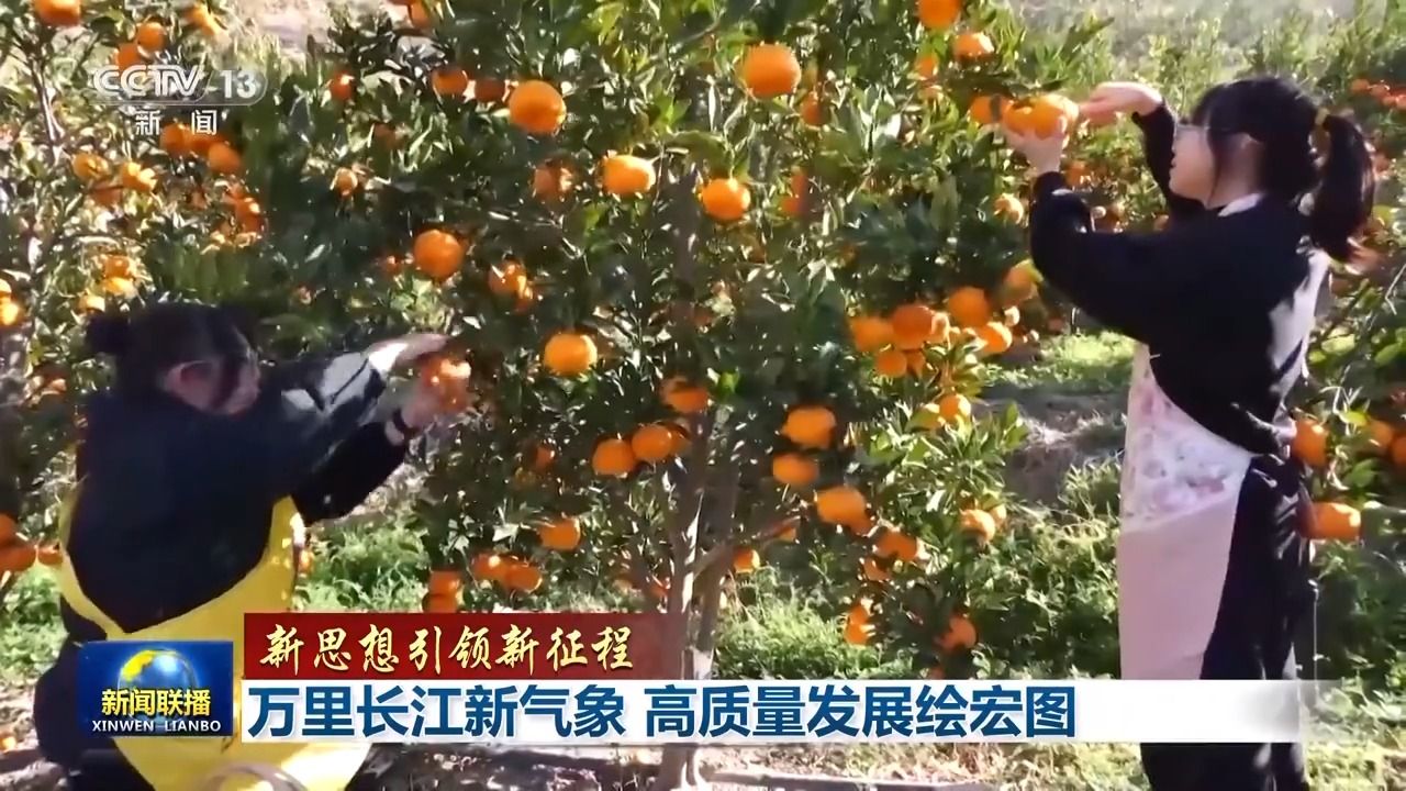 看上游,云南金沙江畔的脐橙、甘蔗迎来丰收,昔日江边的座座荒山,现在一年四季都有了收获。