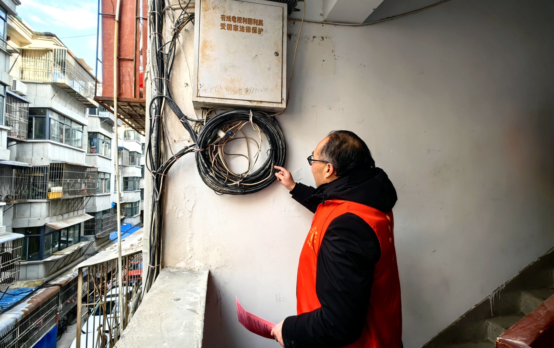 农机中心干部身穿志愿服装,手拿宣传手册,深入包联小区讲解防火措施及发放宣传单,同时,重点查看消防设施、电力线路情况,及时排查出安全隐患,保证群众过安全幸福年。