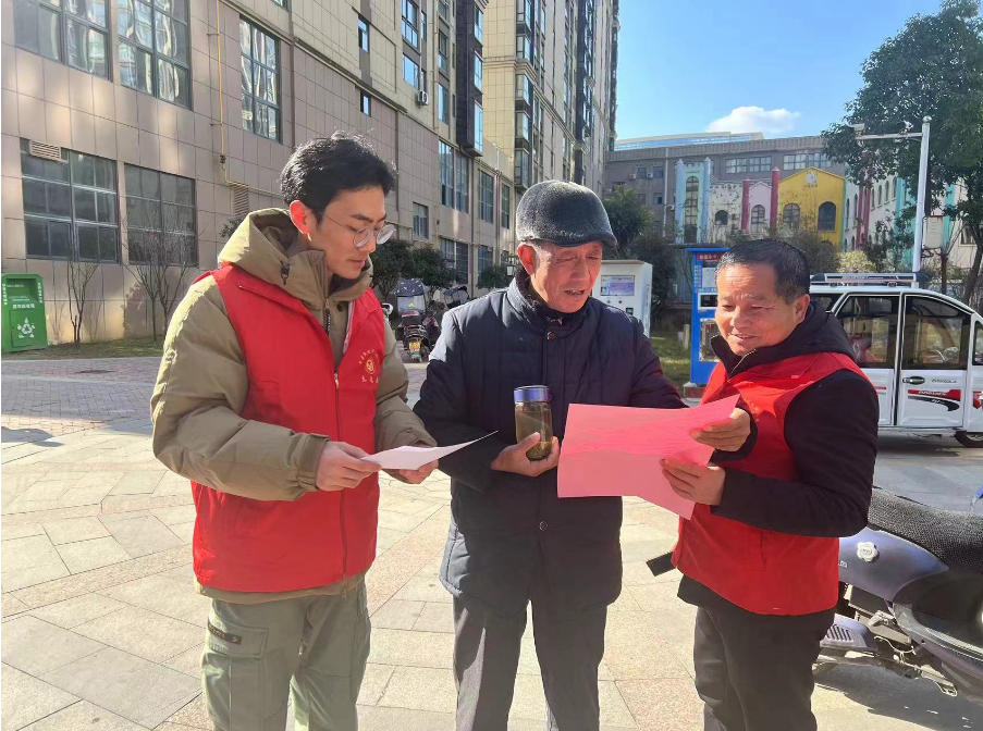 志愿者们首先带领物业管理人员来到社区中心公园,与晒太阳的老人唠家常。在你一言我一语地亲切交流声中,不仅了解到居民们近期的生活状况,也向他们耐心讲解了文明城市创建以及扫黑除恶相关政策,并叮嘱独居老人天气寒冷干燥,务必注意用火用电安全,确保过个平安祥和的好年。随着交流氛围的越发火热,志愿者们携带的《十堰市文明行为促进条例》、冬季用电防火知识等上百份宣传资料被围观群众一扫而空。