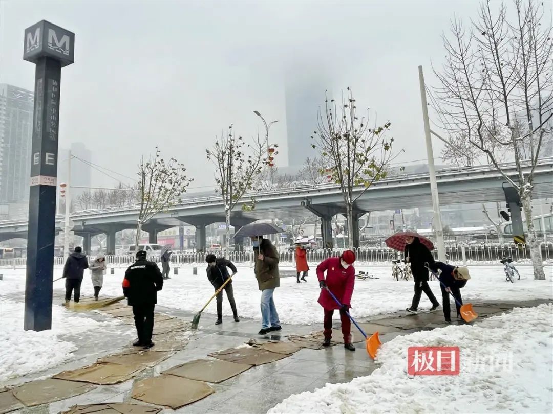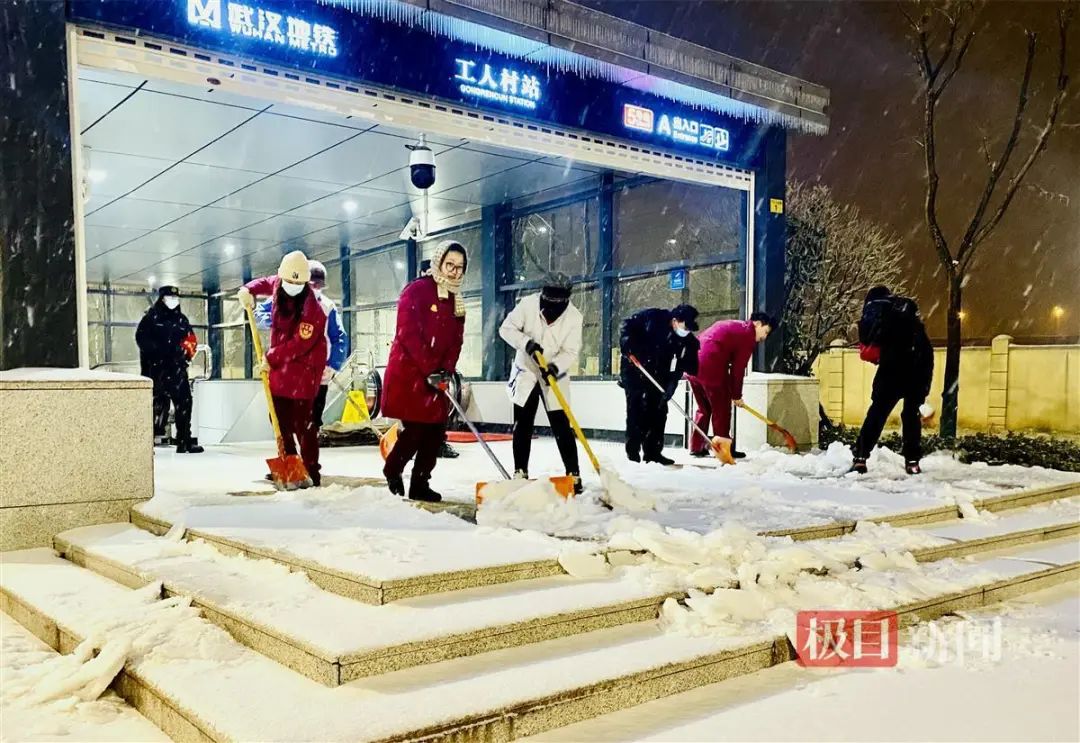 极目新闻记者从武汉地铁运营公司了解到,面对大雪冰冻天气,武汉地铁提前谋划,多部门、多专业协同联动,万余名员工以风雪为令,紧盯行车重点部位、设备检修重要环节、乘客出行必经路线,全力投入到保障安全运营、融雪除冰工作中。