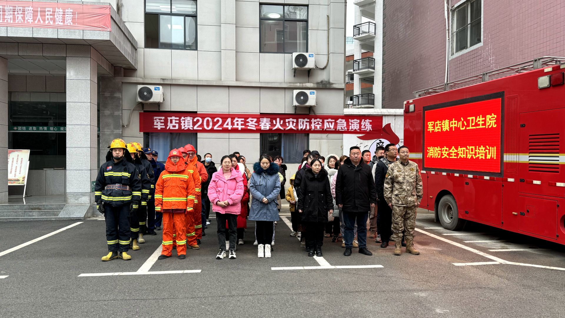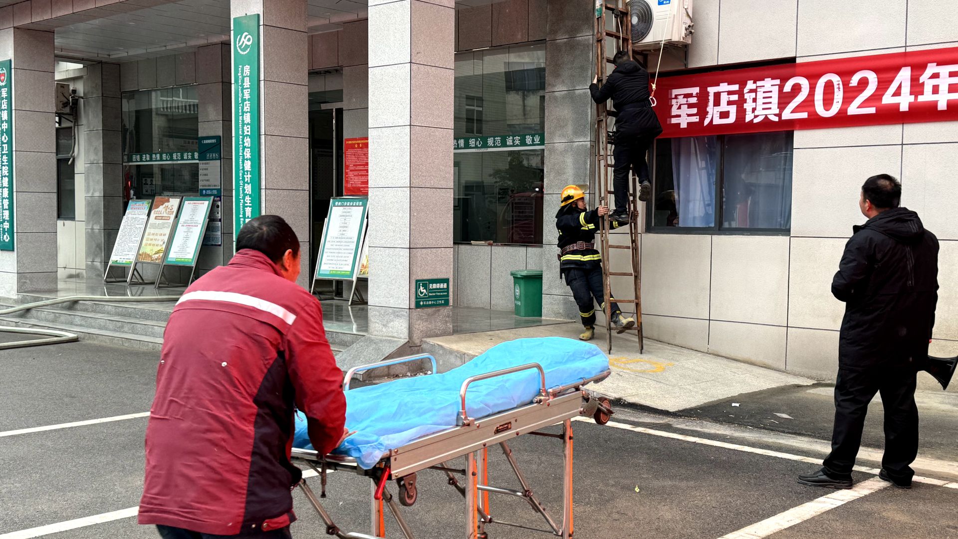 “叮叮叮...”随着警铃响起,消防人员闻警而动,迅速响应。本次消防演练模拟军店镇中心卫生院住院部二楼妇产科发生火情,有人员“被困”,火场情况十分危急。军店镇消防救援所接到报警后,一次性调集中心消防救援站、卫生院、派出所、民兵等基层消防应急力量赶赴现场处置。演练过程中,全体参战力量严格按照“救人第一、科学施救”的处置原则,设定指挥、侦察、搜救、灭火、供水、保障等演练环节,各负其责,在“组合拳”的相互配合下,经过30分钟的“处置”,“大火”被成功扑灭。