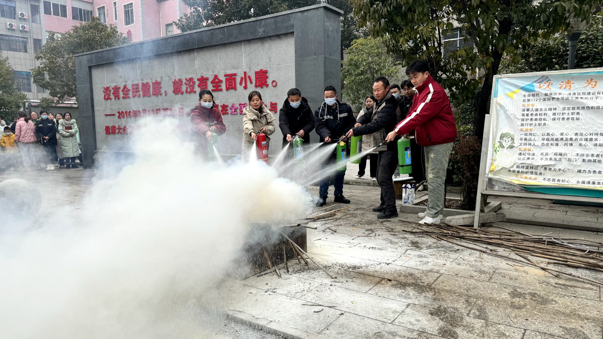 演练结束后,消防人员对此次演练进行总结,并结合医院实际,详细地向大家讲解了如何加强医院消防安全管理、如何查找并消除火患、如何扑救初起火灾、如何逃生自救、如何使用消防设施器材、如何做好“四懂四会”等消防安全知识。随后,组织医护人员进行灭火实操演练,使每一位参训人员熟练掌握灭火器材的使用方法及扑救初期火灾的技巧,真正达到“人人讲消防、个个会应急”的良好效果。