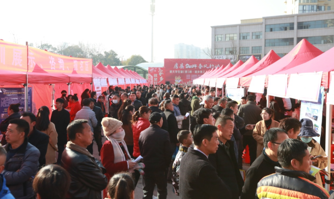 举办室外现场招聘会。春节前农历腊月二十二、二十三、春节后的农历正月初八、初九分别在国风广场举办“大学生留(回)房·返乡务工人员”专场招聘会。城区举办的同时,在20个乡镇政府集镇广场同时举办。