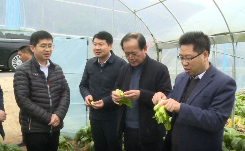 叶建刚一行先后抵达我县土城镇、白鹤镇赤岩村和军店镇下茅坪村分别查看畜牧、蔬菜和羊肚菌生产情况。