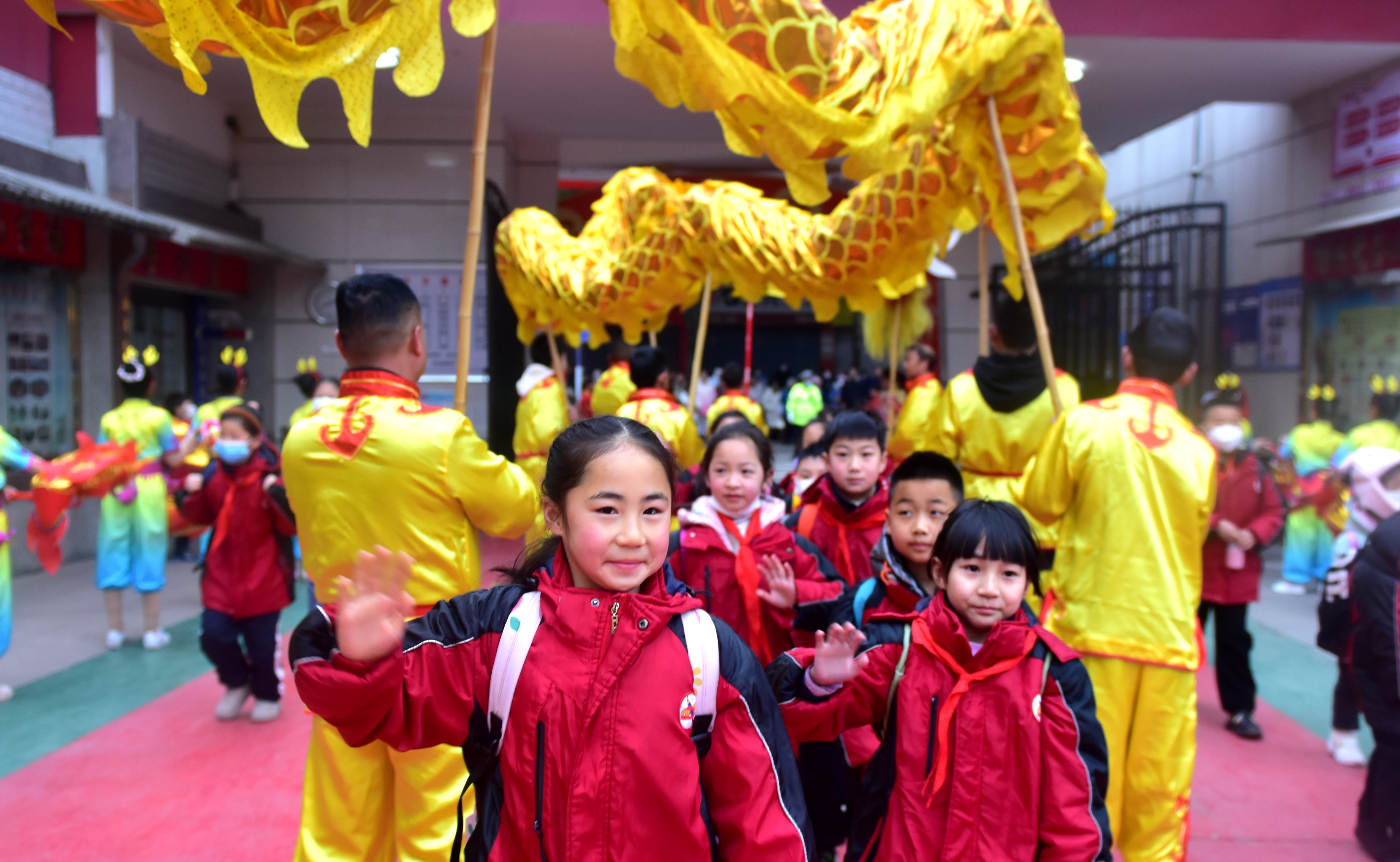 舞龙击鼓迎开学,传统文化润童心。一大早,房县实验小学的校门口擂鼓阵阵,飞龙起舞,随着“咚咚咚”的鼓声,威武的金龙在激昂的鼓点声中飞舞。孩子们开开心心地从金龙下走过,充满灵性的祥龙满载着美好的心愿,孩子们神采飞扬。