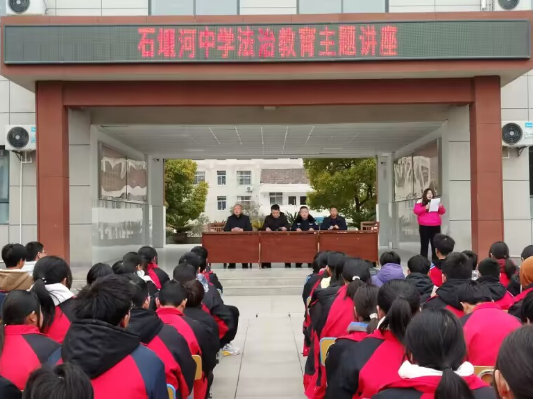 房县新闻网讯 通讯员 段定 杜兴国 报道:为创建安全、文明、和谐的校园环境,推进青少年学法用法工作的深入开展,促进学生健康成长,2月28日下午,镇司法所、派出所、中心学校、房县陵燕律师事务所等单位在白鹤镇石堰河初中开展法治教育进校园活动,为全体师生上了一节精彩生动的法治安全教育课。