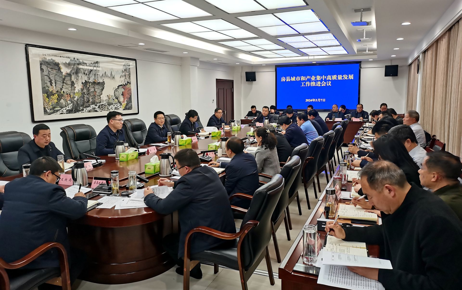 房县新闻网讯 记者 李硕 报道:3月7日,县委书记谢晓鸣主持召开城市和产业集中高质量发展工作推进会,强调要认真贯彻落实省委省政府、市委市政府关于城市和产业集中高质量发展工作部署要求,加强组织领导,聚焦工作重点,明确工作任务,找准工作路径,以项目化管理、清单化落实,全力以赴推动“双集中”工作取得新成效。县委副书记、县长杨丹华出席会议。