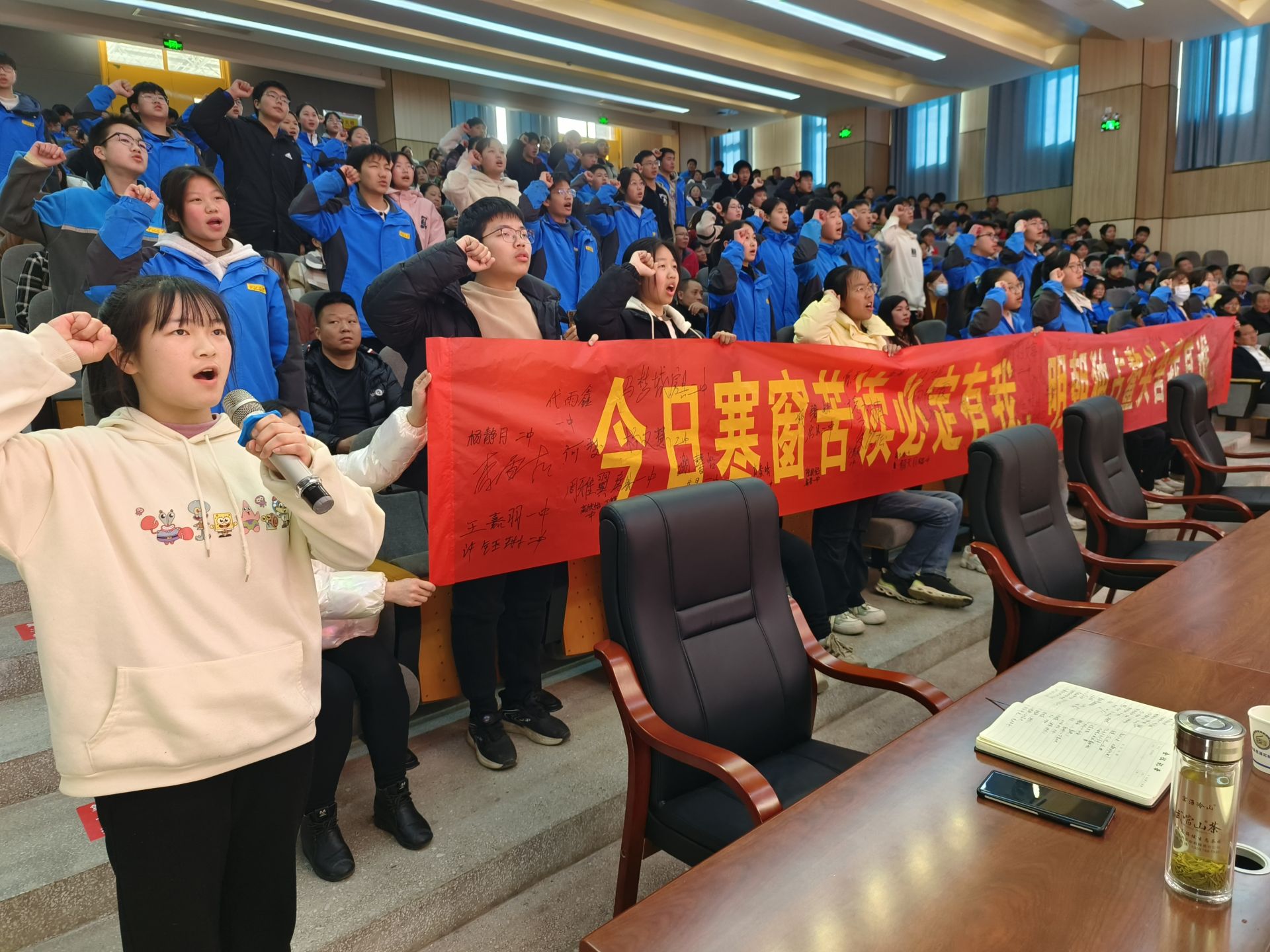 誓师大会在庄严肃穆的国歌声中拉开帷幕,特邀嘉宾房县一中副校长卢定群作了慷慨激昂的中考动员报告,以《为梦想而战》为题,通过电影《热辣滚烫》和老鹰突破自我重获新生的故事启示同学们要奋力拼搏,积极进取,持之以恒,更鼓励同学们上台去大声的说出自己的奋斗目标,通过励志教育激发学生的斗志。优秀学生代表、教师代表、家长代表依次做了动员讲话,希望同学们端正心态、激发潜能,发扬奋力拼搏、永不言败的精神,全身心奋战中考。