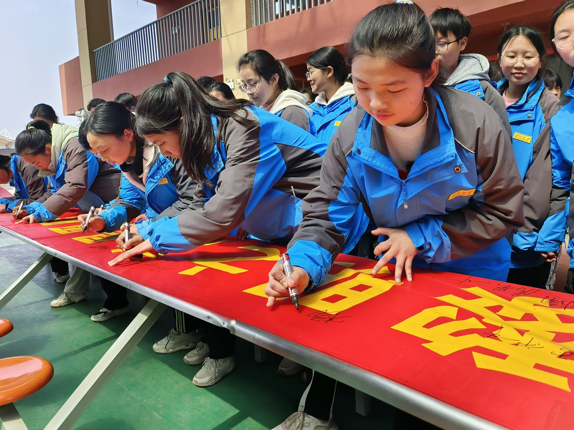 随后,各班学生依次面对班级誓词庄严宣誓,并在班级横幅上签下自己的奋斗目标和姓名,在声声誓言中表达了战胜中考的决心。“今日寒窗苦读必定有我,明朝独占鳌头舍我其谁”,铮铮誓言喊出了思源学子高昂的斗志和顽强拼搏的精神。校长张瑛波在总结发言中指出具体的要求,同时希望全体九年级师生潜心备考、冲刺百日,向学校、家长和社会交出一份满意的答卷。