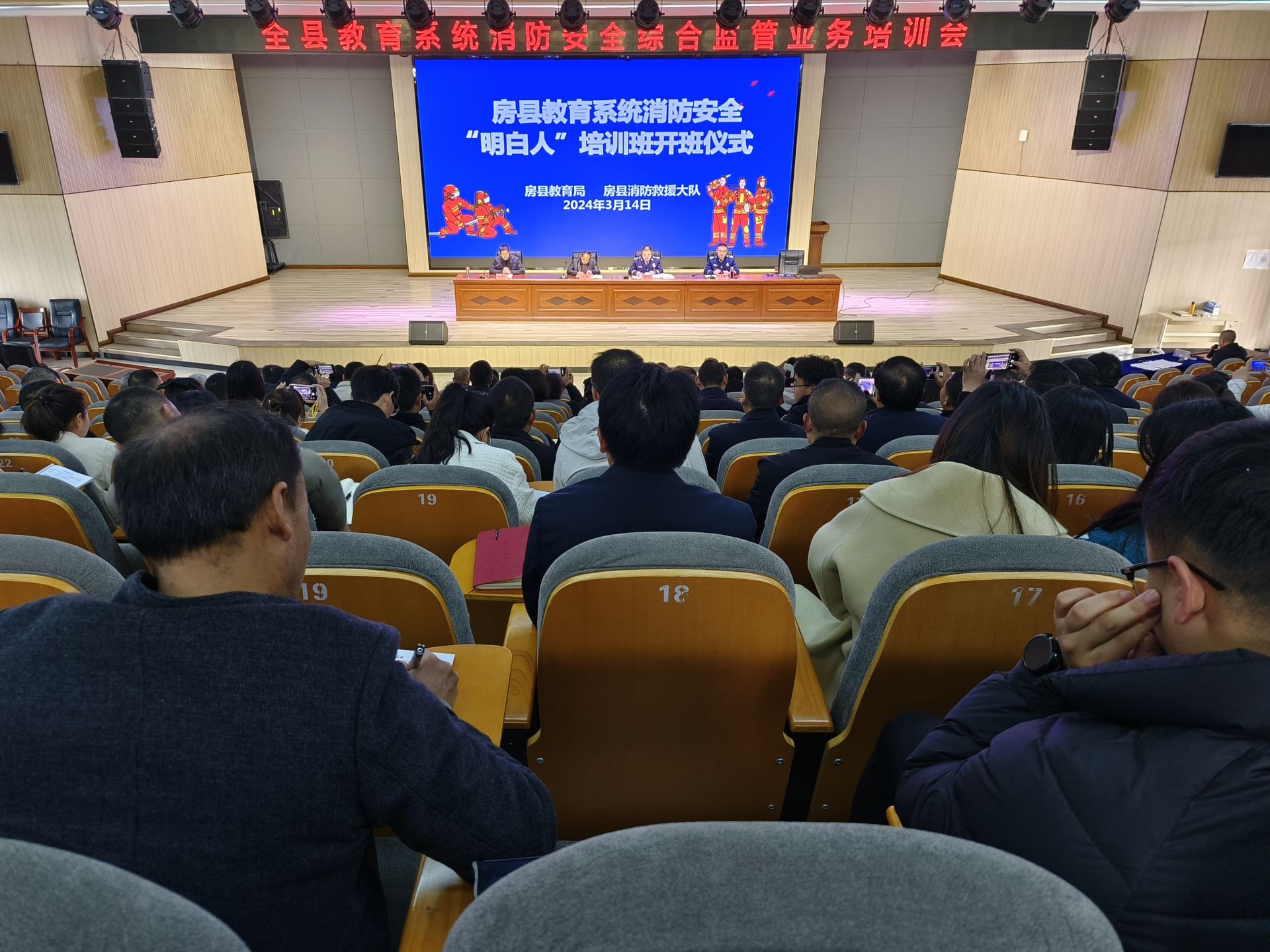房县新闻网讯 通讯员 罗兴超 雷风南 报道:3月14日,房县教育系统消防安全“明白人”培训在县思源实验学校开班,县直学校和各乡镇中心学校分管校长、中小学分管校长和幼儿园分管园长共150余人参加培训。