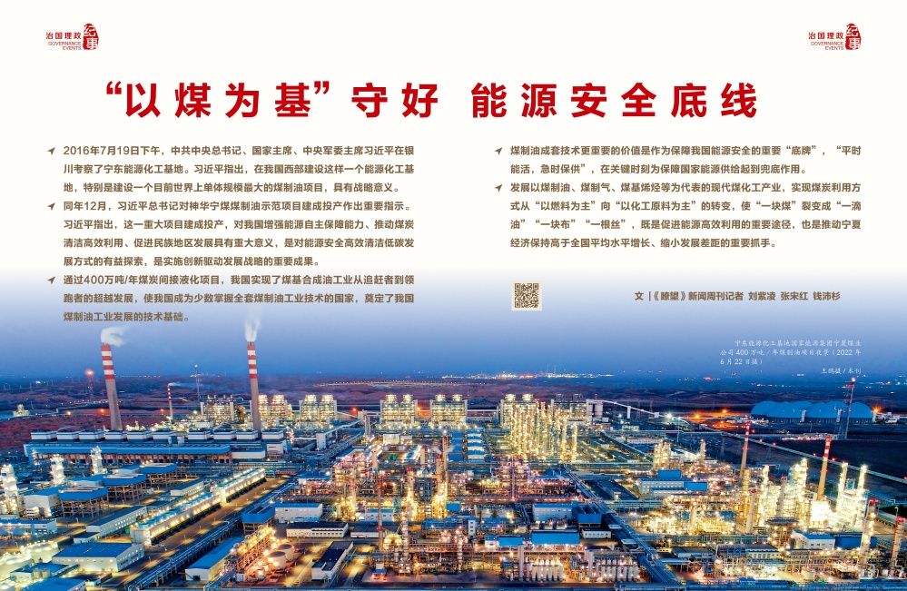 作为我国能源“金三角”的重要一极,宁夏宁东能源化工基地不仅在积极探寻宁夏摆脱资源依赖,加速向绿转型的新路径,也在不断探索符合我国国情的煤炭深加工产业发展模式,为巩固国家能源安全提供技术战略储备。