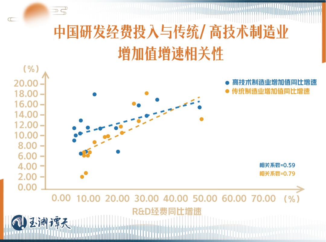 在中国,对于传统产业而言,研发经费投入对增长的贡献,反而更容易显现。