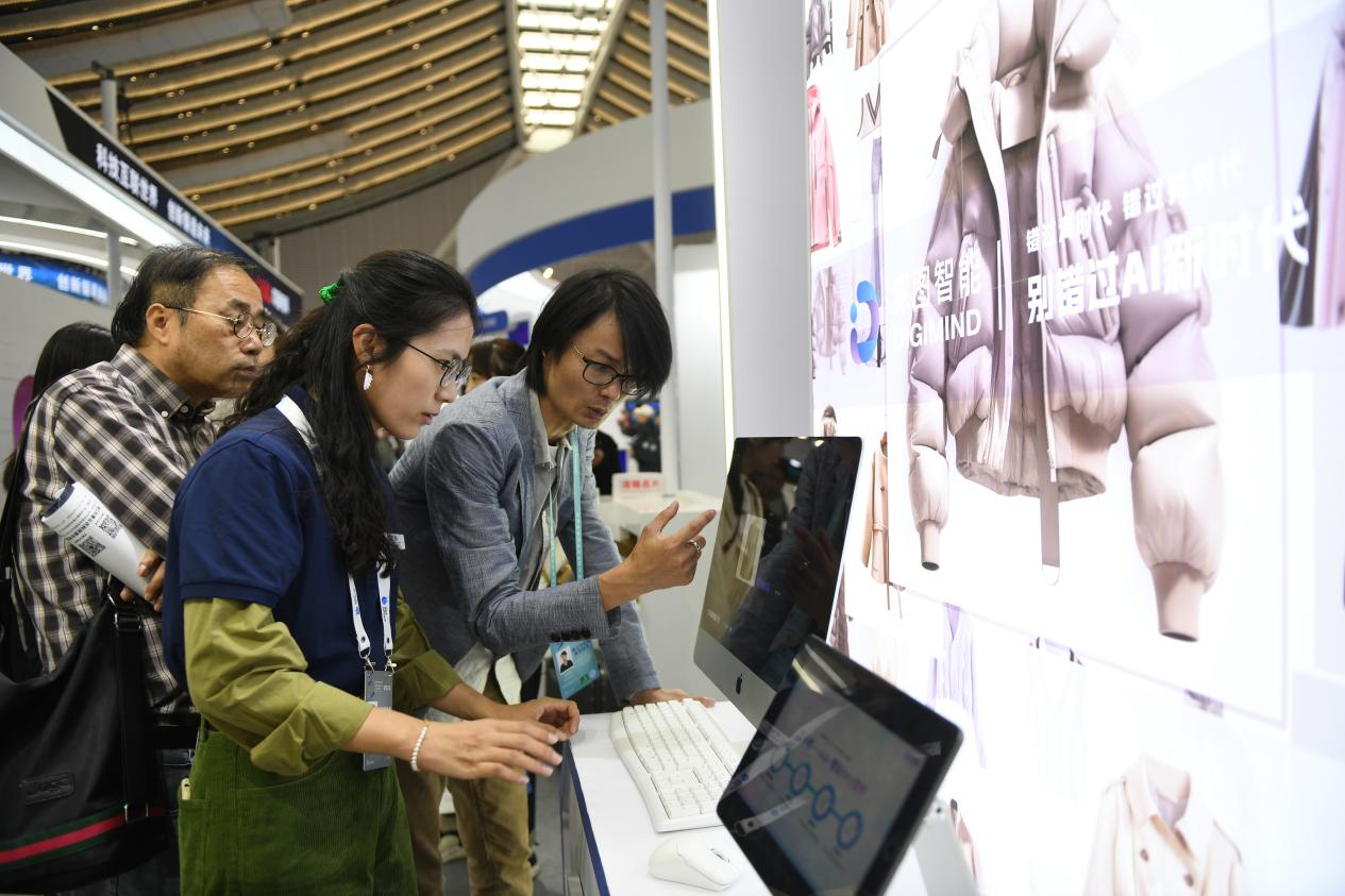 △ 2023年11月9日,“互联网之光”博览会上,人工智能服装设计技术吸引参观者驻足体验。