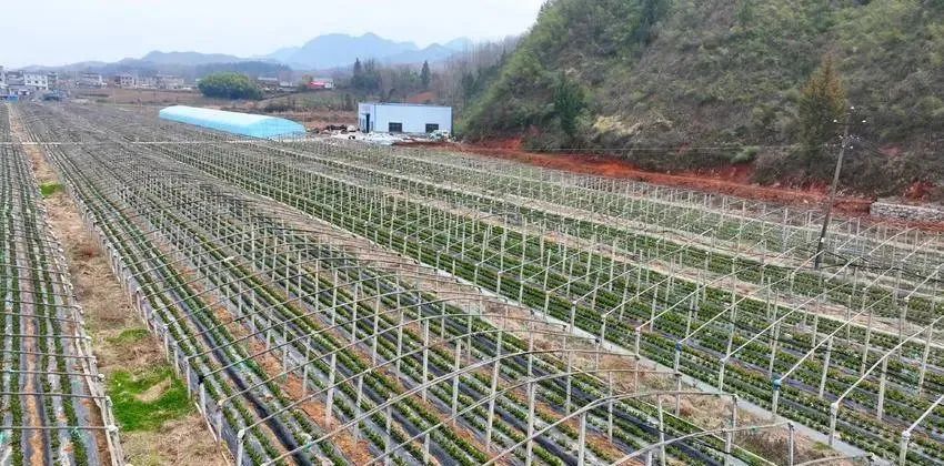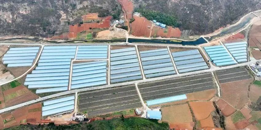 房县新闻网讯 通讯员 张启龙 报道:3月16日,航拍湖北省十堰市房县化龙堰镇上湾村由民间资本参与建设的高标准蔬菜、草莓滴灌节水产业基地。