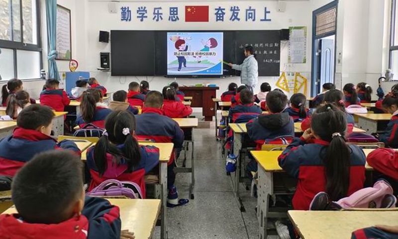 升旗仪式上,学校安全办负责人对全体师生进行了关于预防校园欺凌的国旗下讲话,倡导学生与人为善、互相帮助、远离欺凌,倡导同学们团结友爱,提高自我保护意识。在班会活动中,班主任通过图片、文字展示,直观、形象地向学生们宣传、介绍“什么是欺凌”“怎样预防欺凌”,引导学生要敢于向校园暴力说“不”, 要学会正确处理同学之间的关系,遇到欺凌时要学会保护自己,及时报告老师和家长,妥善处理矛盾;结合国内近期发生的典型校园霸凌案例的详细讲解,以案说法,让同学们进一步认识了校园欺凌的危害性和怎样应对身边防欺凌的方法;要求全校各班对欺凌现象进行摸排调查,若发现欺凌隐患,及时规劝教育,化解矛盾,把欺凌现象防范在萌芽状态。