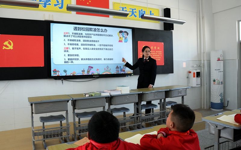活动中,学校法治副校长根据学生的年龄、心理和生理特点,结合真实典型案例,参照《中华人民共和国未成年人保护法》,对校园欺凌行为的表现形式、社会危害性进行深入浅出地讲解,重点从“什么是校园欺凌”“怎样预防校园欺凌”“遇到校园欺凌如何应对”等方面进行详细阐述,使广大在校学生充分认识到校园欺凌行为不仅会受到社会舆论和道德谴责,而且还要承担相应的法律责任,引导学生树立正确的人生观和价值观,遇到校园欺凌现象时,要善于拿起法律武器,敢于向各类校园欺凌行为说“不”。