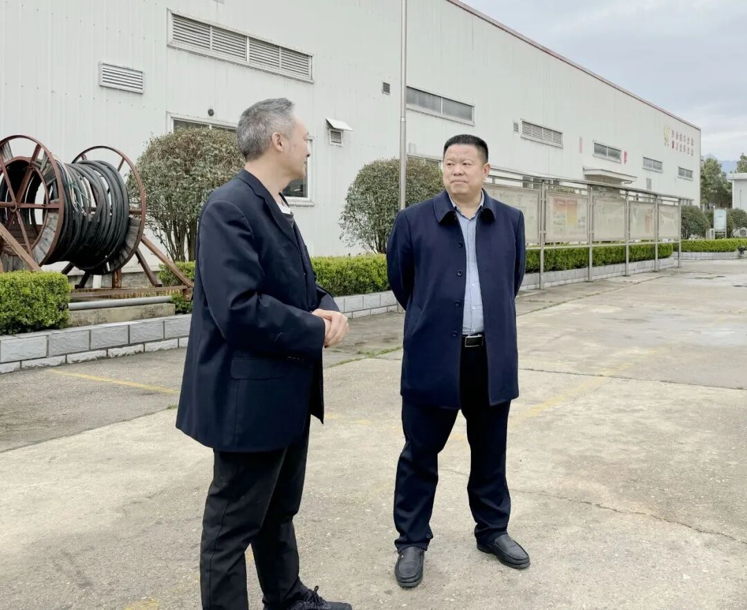 房县农商行党委书记、董事长王绍军(右)深入辖内小微企业开展走访对接