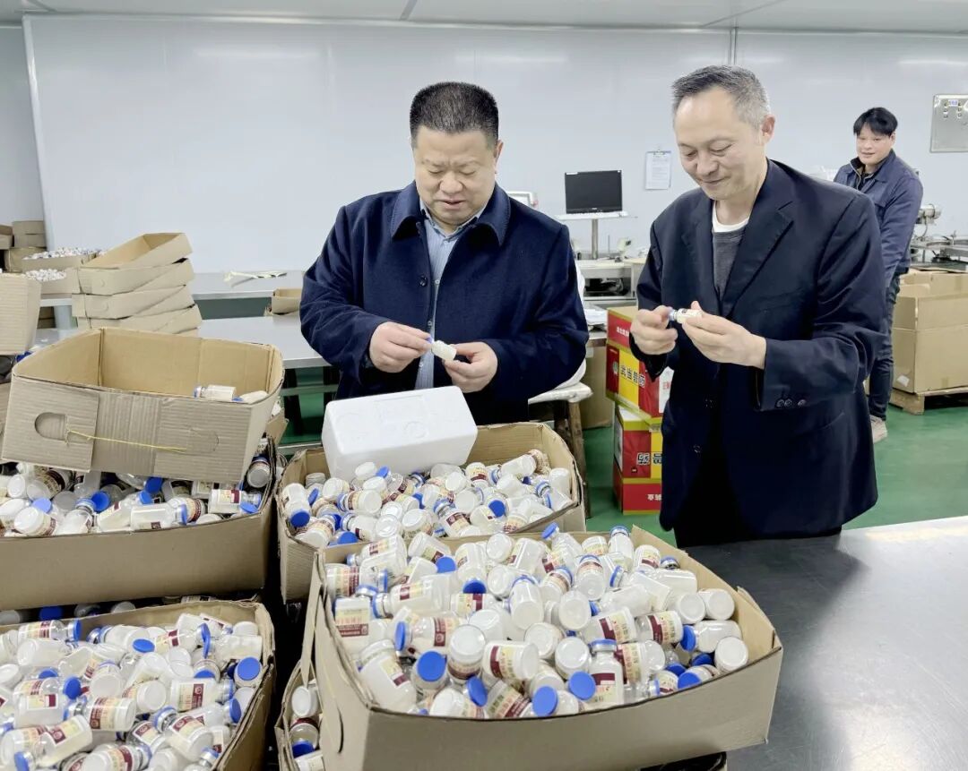 在湖北武当动物药业有限责任公司,王绍军与公司负责人开展现场交流,在详细询问公司的发展状况、产品销路、资金需求等情况后,又实地查看了公司的生产车间和产品仓库,鼓励企业坚定发展信心,积极开拓创新,全面保障满负荷生产,并承诺将进一步深化“金融保姆”内涵,提升服务质效,全力支持企业发展壮大。