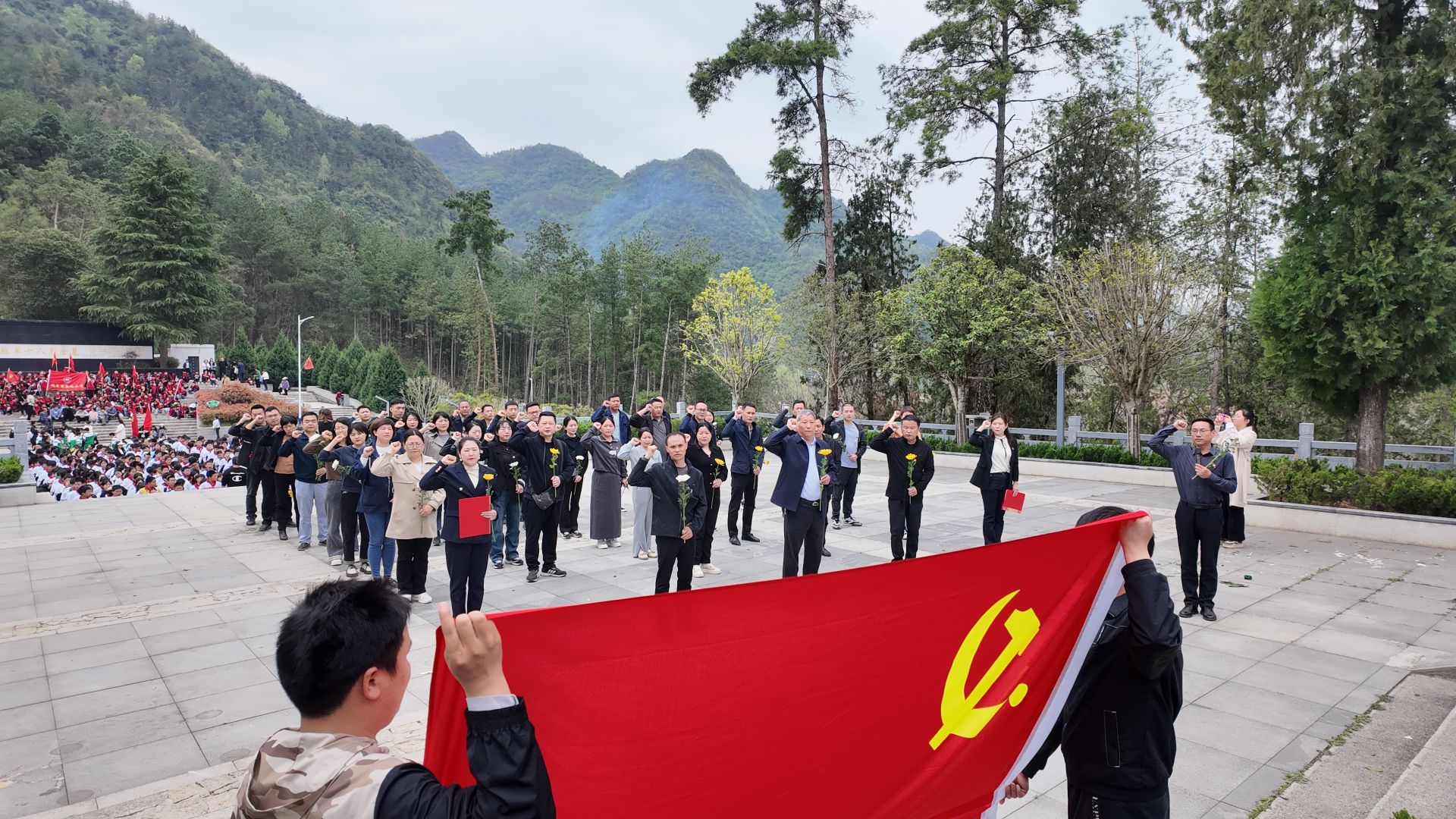 在烈士塔前,全体党员干部集体向革命先烈默哀3分钟,在局党组的带领下,全体党员举起右手重温了入党誓词,预备党员和入党积极分子代表面对鲜红的党旗和革命先烈,立下为共产主义事业奋斗终身的誓言。
