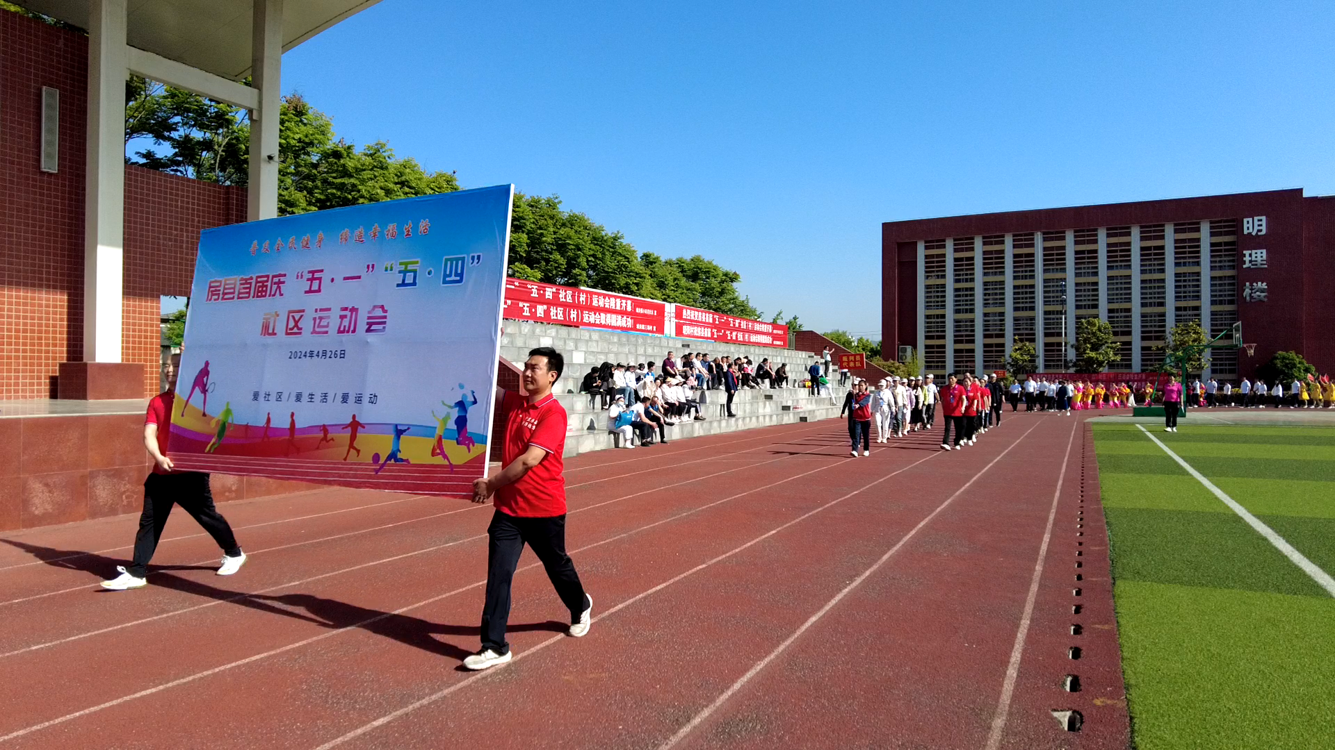 房县新闻网讯 记者 秦珊珊 通讯员 吴丽丽 报道:4月26日,房县首届庆“五·一”“五·四”社区(村)运动会在房县天明小学隆重开幕,来自城关镇18个社区1000余名社区(村)居民运动员参加比赛。县人大常委会副主任、城关镇党委书记丁杰,副县长邹莉参加开幕仪式。