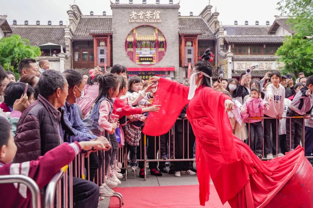 又是一年春好处,“五一”长假第一天,四面八方的游客蜂拥而至,西关印象迎来客流小高峰,大批市民和游客纷至沓来,很是热闹。伴着周南广场的钟声,仪式感满满的《周礼迎宾》表演,拉开了景区全天演艺大幕。