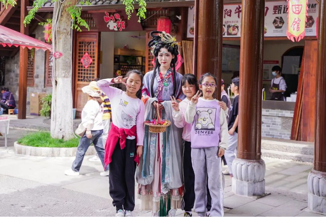 场景生动而有趣:有人正与中华诗祖尹吉甫吟诗对句,文采飞扬;有人则笑颜如花,与满面春风的女财神留下珍贵合影;黄香以其超凡脱俗的颜值,令无数过客为之倾倒。更有一幕温馨,天真烂漫的小朋友好奇询问曲娘黄酒工坊内,那醇香四溢的佳酿是否出自她一人之手,童言无忌,添了几分纯真乐趣。