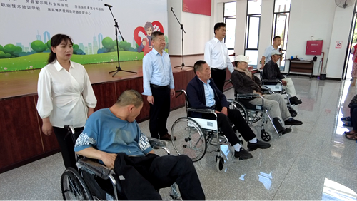 活动启动仪式上,县残联、科协、青峰镇分别向患有严重肢体残疾、听力残疾和智力残疾的残疾朋友们发放了轮椅、智能语音药盒和带有定位芯片的走失牌。