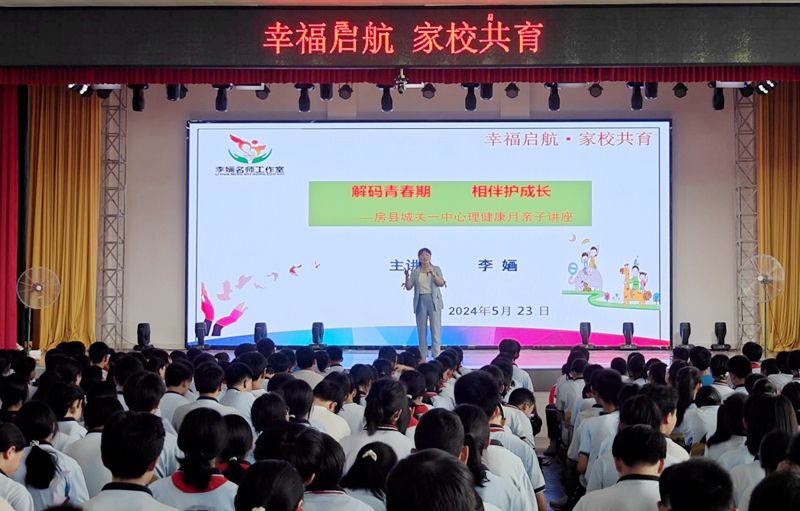 活动中,相关部门负责人传达第二届湖北省未成年人心理健康教育宣传月活动安排,解读《十堰市中小学心理健康教育发展工作实施意见》并进行后期工作安排,心理健康辅导老师为学生们进行了生动而富有启发性的心理健康教育讲座,介绍了如何保持心理平衡、有效应对情绪波动等实用内容。学生和家长们们积极参与互动环节,表达了对心理健康教育的重视和学习的热情。