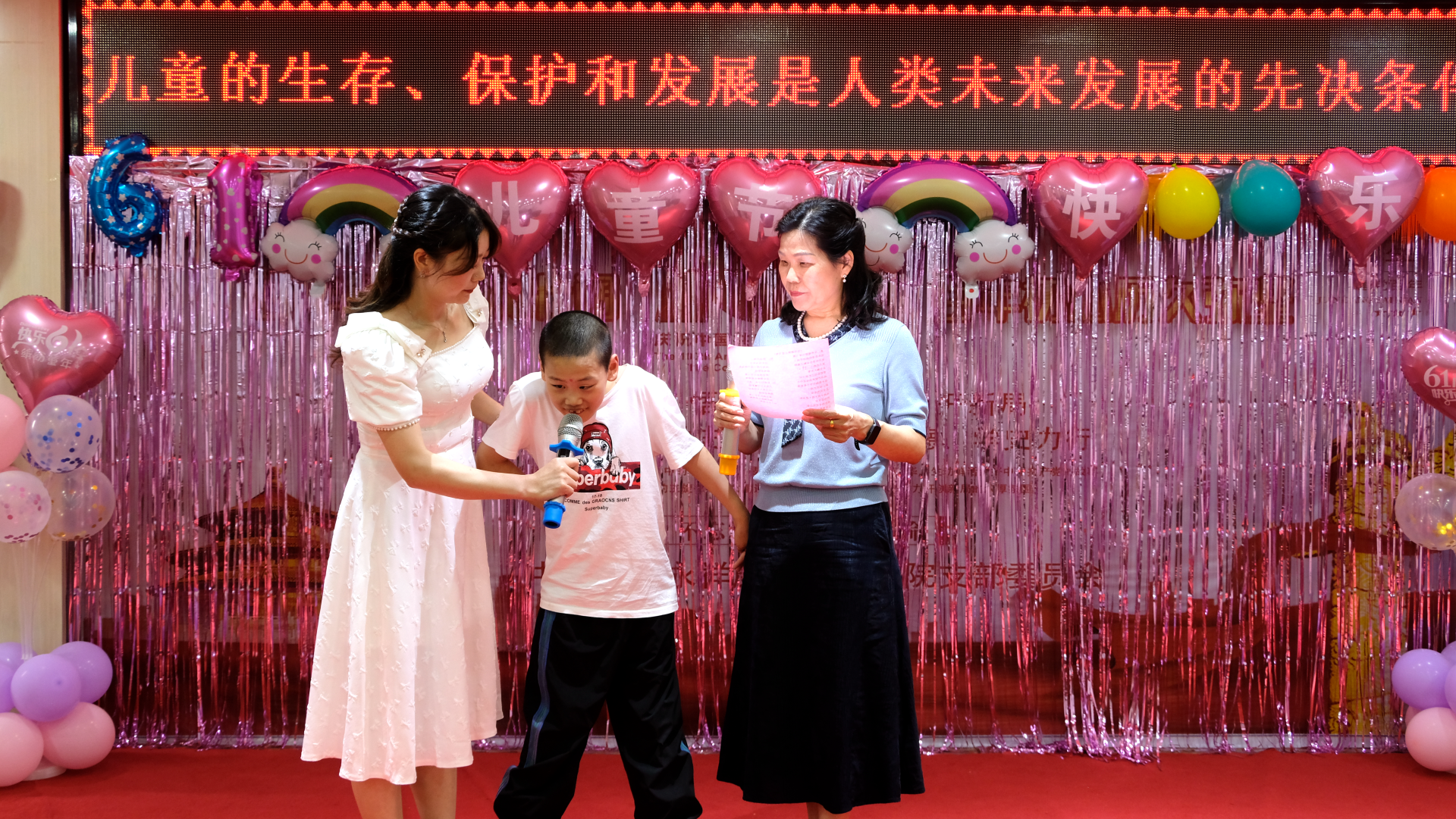 活动中,房县永祥康复专科医院精心准备了一系列的精彩节目和亲子趣味小游戏,各科室主任以短视频的方式为患儿送上祝福。党支部书记董桂荣和特殊儿童合诵《没有翅膀也要飞翔》、医护人员三句半《开心六一》、合舞《相亲相爱》等节目将现场的气氛和观众的热情推向高潮,院长罗永洪为患儿送上节日祝福和精美的礼物,带给他们无尽的欢乐和关爱。