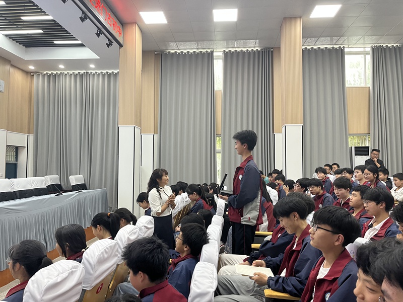 李婳老师运用风趣、亲切的语言以及现场互动,将专业的心理知识寓教于乐地传授、分享给学生。她从“为何会产生焦虑”、“如何缓解焦虑”、“考前心理如何调适”、“考场如何应对”等方面着手,让同学们明白考前情绪是一种正常表现,不必担心。