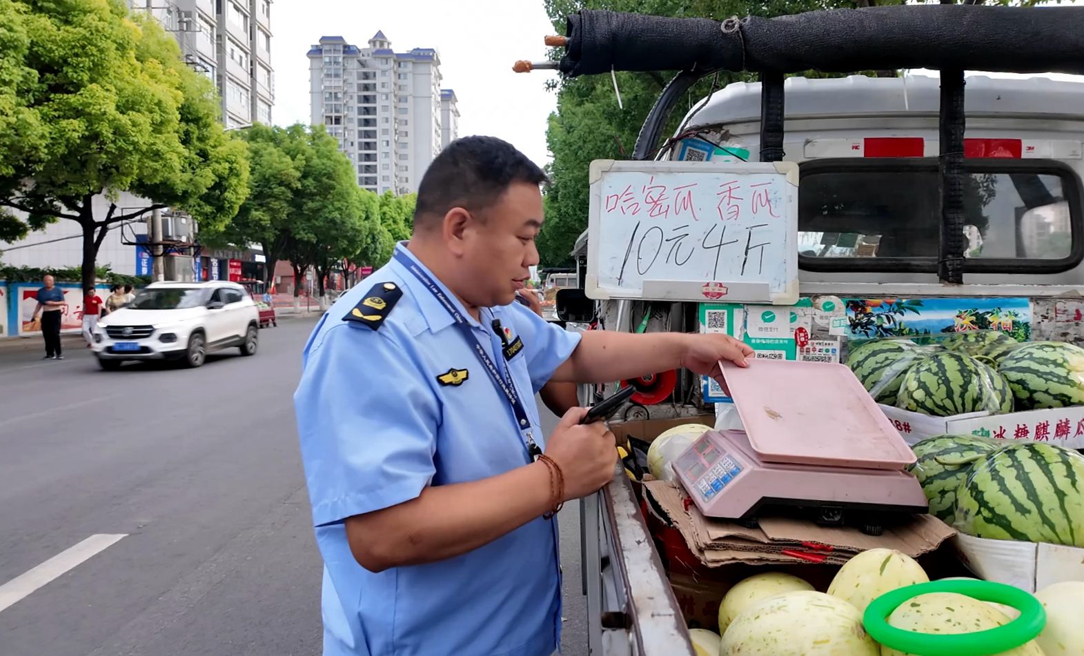 “称没问题,但是有一点,这个称没经过检验,你们把称拿到房县计量所,我们给你免费的检验,检一次管一年。”此外,执法人员还对经营者进行了计量器具相关政策宣传,要求其对使用的计量器具按期进行检定,做到公平交易,诚信守法。