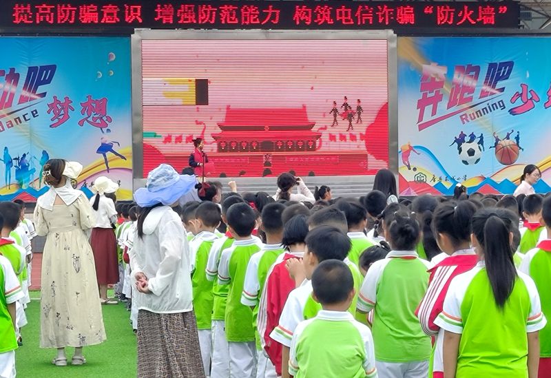 房县新闻网讯 通讯员 李英 杜静文 报道:为进一步做好校园防范电信网络诈骗工作,加强对学生的防诈骗安全教育,提高学生防诈骗的意识和能力,构建和谐平安校园,6月17日,县东城小学利用周一升国旗的时间开展“提高防范意识,增强防范能力,构筑电信诈骗防火墙”防范电信网络诈骗活动。